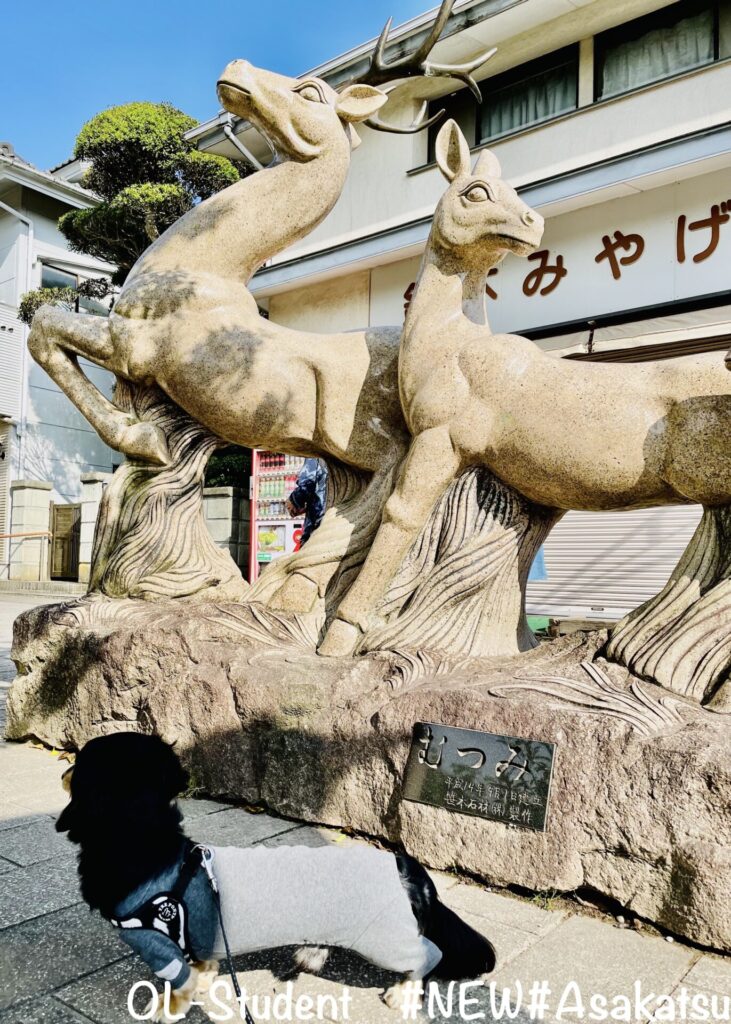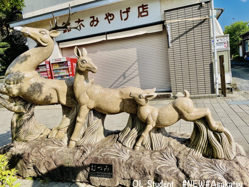参道を下っていると道に突如現れる鹿のオブジェ:むつみ。