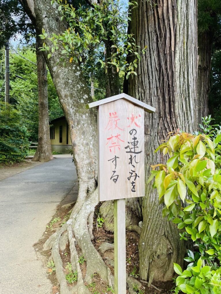 駐車場から境内に入る入り口にもきちんと立て看板があるので、ペット連れでお出かけの際には注意してください。