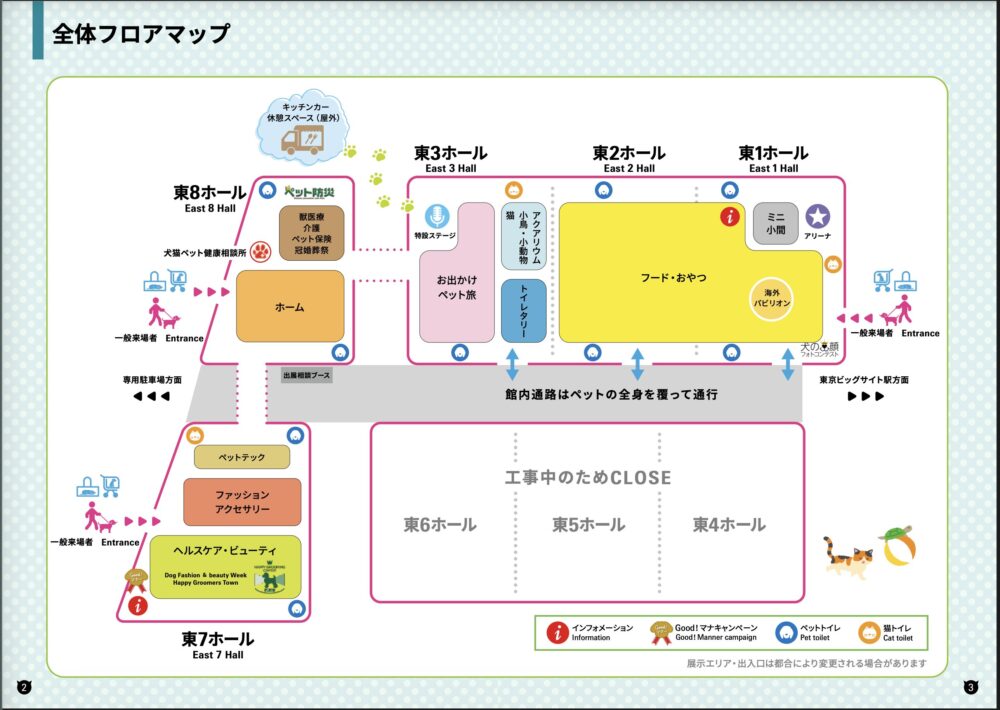 今年のインターペットは、東京ビッグサイトの東4〜6ホールが工事中のため、「東1・2・3・7・8ホール」での開催となります。